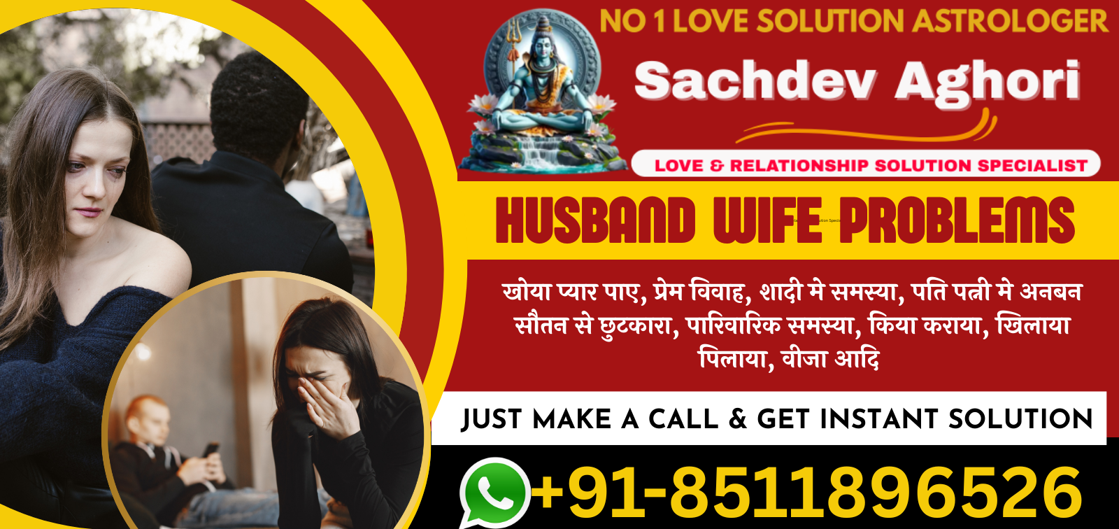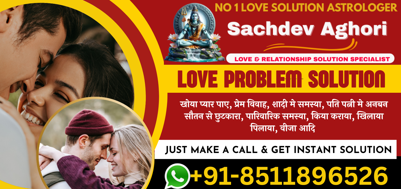 Thank you so much Astrologer Sachdev Aghori for helping me. My partner was also involved in extra affair but your solutions helped me to get him out from this.